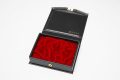 高級感あふれる本レザー調の素材を使用しており、フタはボタン式の止め具式になっていて持ち運びにも便利になっております。内張りのフタ部分は捺印マット仕様になっており、持ち運ぶことも考え作られていますので軽量化されています。携帯性に優れ、契約等のビジネス場面で活躍する印鑑ケースです。H130mm×D100mm×H35mmです
